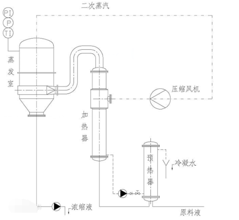 結構組成:過濾系統、預熱系統、板式加熱器、物料泵、分離器、除霧器、蒸汽洗滌塔、蒸汽壓縮機