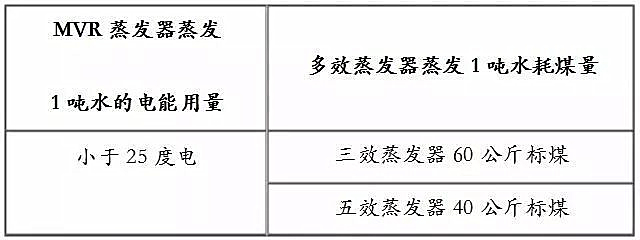 1. MVR蒸發器與傳統多效蒸發器煤消耗的價格對比